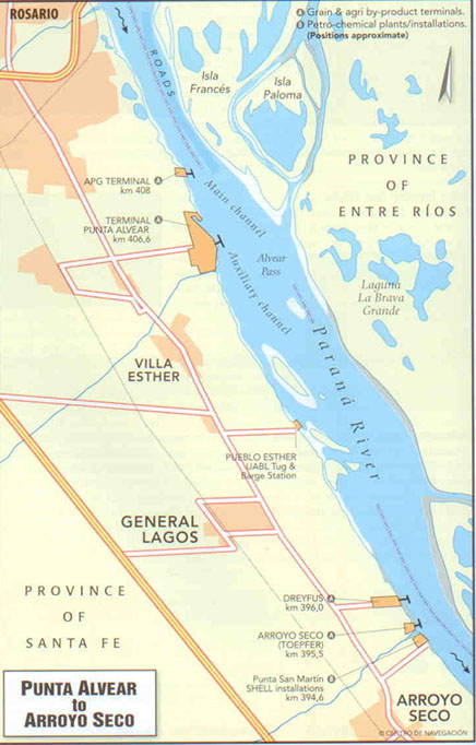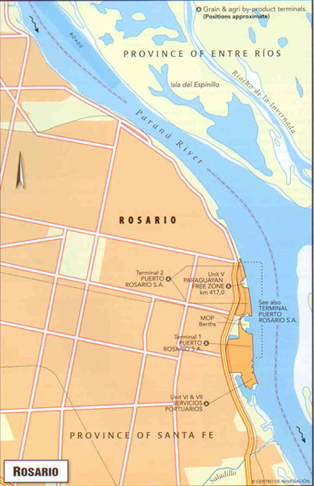 Is operated by Terminal Puerto Rosario S.A. and is fitted with 570 m water front pier. It includes Wharf BC, Wharf HI, Wharf J, New mole North and New Mole South. The terminal is suitable for loading and discharging different commodities as fertilizers, steel products, iron ore, bulk and bagged rice, vegetable oils, containers, etc.