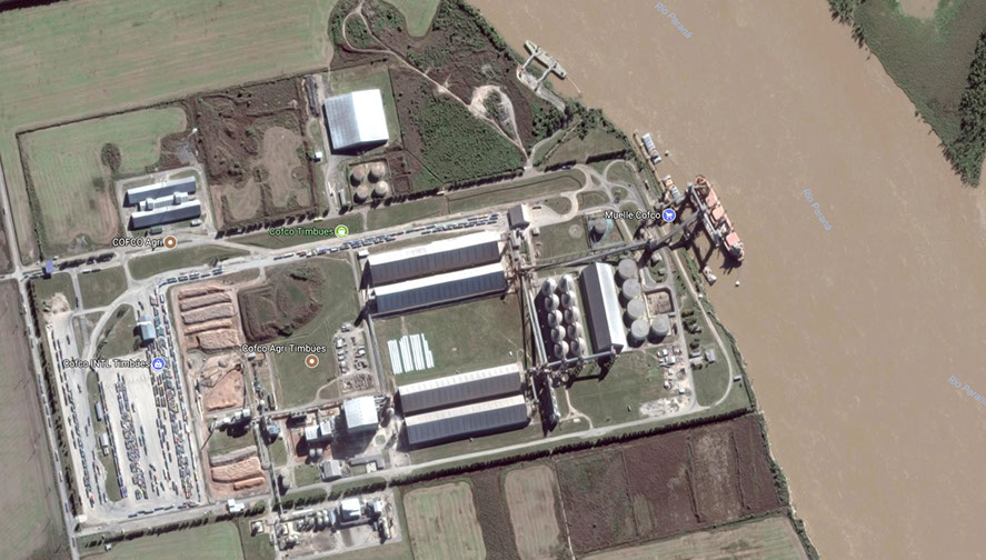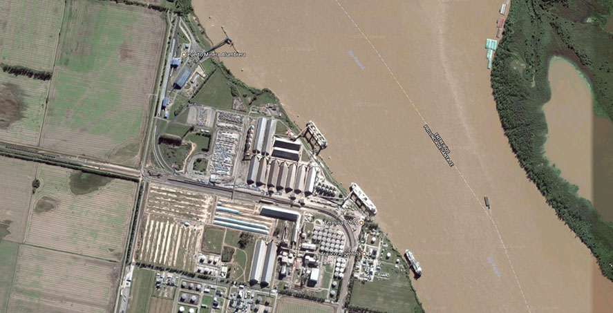 Is owned and operated by Messrs. Vicentin. The have storage capacity for grains/byprods and vegoils. The inner side of this elevator has facilities to discharge barges. A whole barge convoy can be accomodated between the coast and the dolphins. The terminal is laso fitted with hopper and belt conveyor systems designed for the discharge of fertilizers and sulphur.